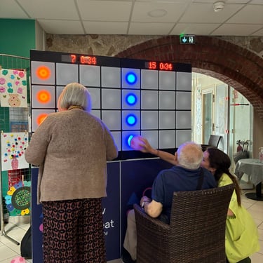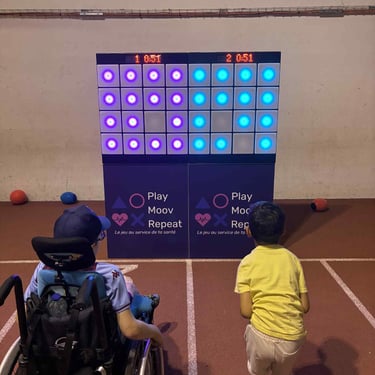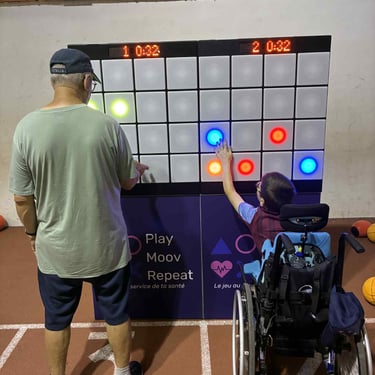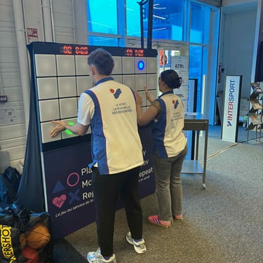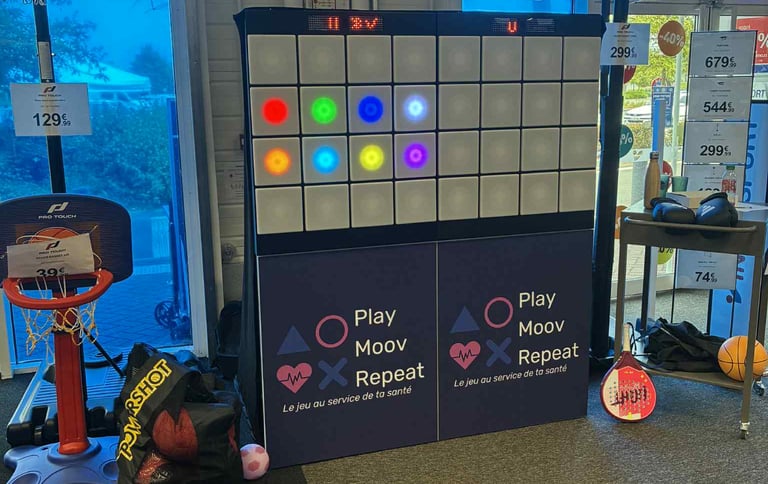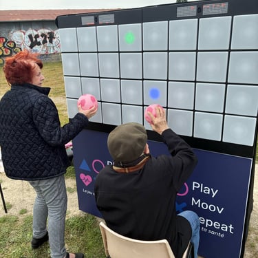 "Dans le cadre d'un forum des seniors organisé par l'association Parcours & Vous et le Contrat local de santé de Mayenne Communauté, nous avons eu le plaisir d'accueillir une animation originale et particulièrement appréciée : le mur interactif de Play Moov Repeat. Cet outil innovant a attiré l'attention des visiteurs (seniors, familles, étudiants, professionnels, élus...) qui ont pu le tester. Le mur interactif permet de promouvoir l'activité physique de manière ludique et accessible, dans une ambiance conviviale. Il allie divertissement, mouvement et prévention santé. Cette animation a apporté une touche dynamique à l'événement et a permis de créer du lien avec les structures du territoire."
